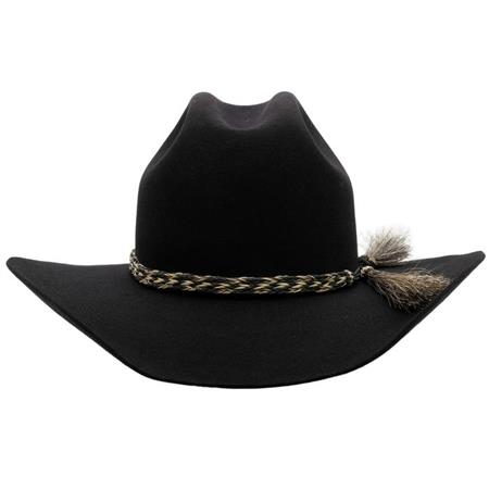 The Rough Rider is a style designed with a slightly smaller up-swept brim and centre-creased western crown. This Western hat features a braided double horse hair tail hatband, and satin lining. Rough Rider's have a 98 mm brim with a cut edge. This hat is always popular amongst our Agriculture Colleges from various country towns, with many students replacing it at the start of the school year.